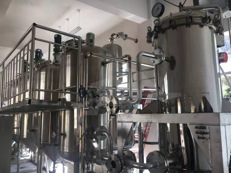 (1)脱胶:应用物理、化学或物理化学方法将粗油中胶溶性杂质脱除的工艺过程成为脱胶。食用油脂中,若磷脂含量高,加热时易起泡、冒烟、有臭味,且磷脂在高温下因氧化而使油脂呈焦褐色,影响煎炸食品的风味。脱胶就是依据磷脂及部分蛋白质在污水状态下溶于油,但与水形成水合物后则不溶于油的原理,向粗油中加入热水或通入水蒸气,加热油脂并在50℃温度下搅拌混合,然后静置分层,分离水相,即可除去磷脂和部分蛋白质。